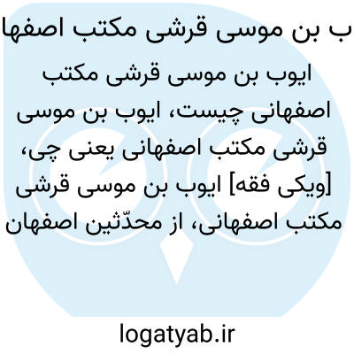 [ویکی فقه] ایوب بن موسی قرشی مکتب اصفهانی، از محدّثین اصفهان بوده است.