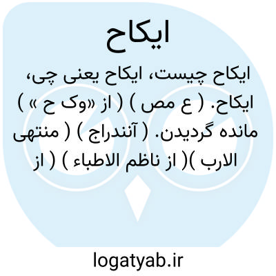 ایکاح. ( ع مص ) ( از «وک ح » ) مانده گردیدن. ( آنندراج ) ( منتهی الارب )( از ناظم الاطباء ) ( از آنندراج ) ( از اقرب الموارد ). || بسنگ رسیدن در کندن چاه. ( آنندراج ) ( منتهی الارب ) ( از اقرب الموارد ). || بریدن و خاص کردن عطیه را. ( آنندراج ) ( منتهی الارب ) ( از ناظم الاطباء ) ( از اقرب الموارد ). قطع کردن دهش را. ( ناظم الاطباء ). || باز ایستادن از کاری. ( منتهی الارب ) ( آنندراج ) ( ناظم الاطباء ) ( از اقرب الموارد ).