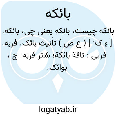 بائکه. [ ءِ ک َ ] ( ع ص ) تأنیث بائک. فربه. فربی: ناقة بائکة؛ شتر فربه. ج، بوائک.