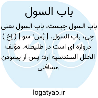 باب السول. [ بُس ْ سو ] ( اِخ ) دروازه ای است در طلیطله. مؤلف الحلل السندسیة آرد: پس از پیمودن مسافتی بمیزان پنج دقیقه از باره ای که اعراب برآورده اند به دروازه ای میرسیم آنرا نیز اعراب بنیان نهاده اند. و آنرا باب السول می نامند. گویند دروازه مزبور در سال 1100 م. بنا شده است یعنی پس از استرداد اسپانیا طلیطله را ولی بنای آن بسبک معماری عربی است. ( الحلل السندسیه ج 1 صص 436 - 437 ). باب سول در قدیم دروازه حقیقی طلیطله بوده است و مورخان در تاریخ این دروازه هم رای نیستند. برخی گویند در روزگار الادفونش ششم ( الفونس 6 ) ساخته شده است و گروهی بر آنند که در پایان روزگار عرب برآورده شده است.