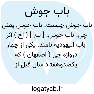 لغت نامه دهخدا باب جوش. [ ب ِ ] ( اِخ ) آنرا باب الیهودیه نامند. یکی از چهار دروازه جی ( اصفهان ) که یکصدوهفتاد سال قبل از اسلام بنا شده است. رجوع به باب الیهودیه و محاسن اصفهان چ طهران صص 92 - 93 شود.