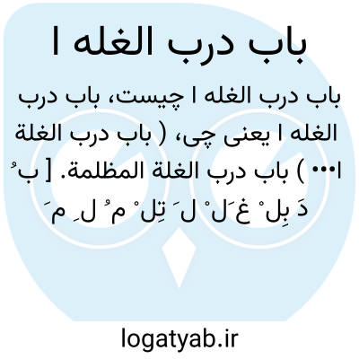 لغت نامه دهخدا ( باب درب الغلة ا••• ) باب درب الغلة المظلمة. [ ب ُ دَ بِل ْ غ َل ْ ل َ تِل ْ م ُ ل ِ م َ ] ( اِخ ) دروازه و کویی در بغداد. رجوع به عیون الانباء چ 1299 ج 1 ص 303 و تاریخ الحکماء قفطی چ لیپزیک ص 213 س 20و ص 214 س 9 شود.