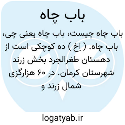 باب چاه. ( اِخ ) ده کوچکی است از دهستان طغرالجرد بخش زرند شهرستان کرمان. در 60 هزارگزی شمال زرند و 12 هزارگزی خاورفرعی زرند به راور. ( فرهنگ جغرافیائی ایران ج 8 ).