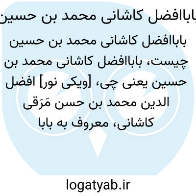 [ویکی نور] افضل الدین محمد بن حسن مَرَقی کاشانی، معروف به بابا اَفْضَل کاشانی، حکیم، عارف و شاعر ایرانی نیمه دوم سده 6 و نیمه نخست سده 7ق است. وی به سبب داشتن آثار فلسفی به زبان فارسی و نیز سروده هایش، در ایران آوازه ای بلند دارد، بااین همه، شرح زندگانی وی چندان آشکار نیست.
