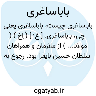 باباساغری. [ غ َ ] ( اِخ ) ( مولانا... ) از ملازمان و همراهان سلطان حسین بایقرا بود. رجوع به حبیب السیر چ خیام ج 4 ص 282 و 290 شود.