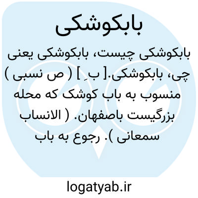 بابکوشکی.[ ب ِ ] ( ص نسبی ) منسوب به باب کوشک که محله بزرگیست باصفهان. ( الانساب سمعانی ). رجوع به باب کوشک شود.