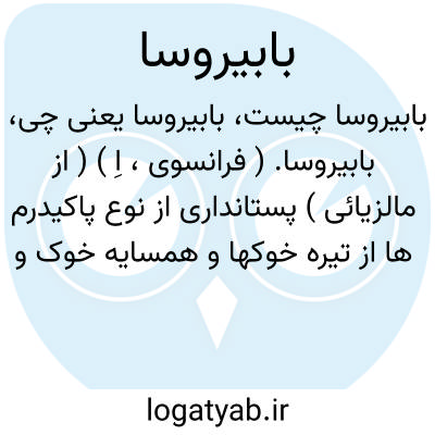 بابیروسا. ( فرانسوی، اِ ) ( از مالزیائی ) پستانداری از نوع پاکیدرم ها از تیره خوکها و همسایه خوک و منشاء آنها از مالزی است. دارای پوستی ضخیم و مایل به قهوه ای که با موهای کمی پوشیده است. دندانهای نیش فوقانیش رشدیافته و از دهان خارج و بطرف بالا پیچ خورده است. جثه این حیوان باندازه جثه الاغ کوچکی بنظر میرسد.