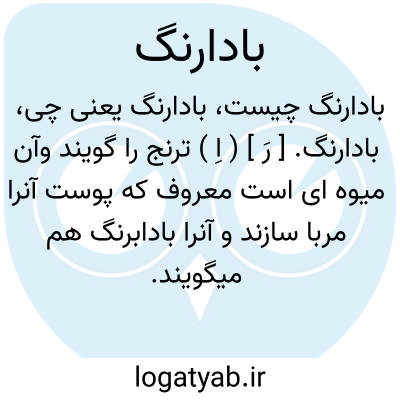 بادارنگ. [ رَ ] ( اِ ) ترنج را گویند وآن میوه ای است معروف که پوست آنرا مربا سازند و آنرا بادابرنگ هم میگویند. ( برهان ). بمعنی ترنج است و آنرا بحذف الف دوم بادرنگ نیز گویند و رنگ آن زرد می شود. مسعودسعدسلمان گفته: