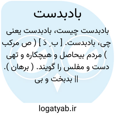 بادبدست. [ ب ِ دَ ] ( ص مرکب ) مردم بیحاصل و هیچکاره و تهی دست و مفلس را گویند. ( برهان ). || بدبخت و بی طالع. ( ناظم الاطباء ). رجوع به باد شود.