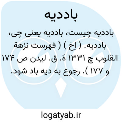 باددیه. ( اِخ ) ( فهرست نزهة القلوب چ 1331 هَ. ق. لیدن ص 174 و 177 ). رجوع به دیه باد شود.