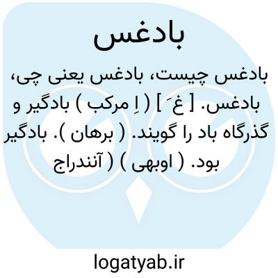 بادغس. [ غ َ ] ( اِ مرکب ) بادگیر و گذرگاه باد را گویند. ( برهان ). بادگیر بود. ( اوبهی ) ( آنندراج ) ( انجمن آرا ). رجوع به لغات بادرس، بادغد، بادغر، بادغرا، بادغرد، بادغن، بادغند، بادگیر در جای خود شود.