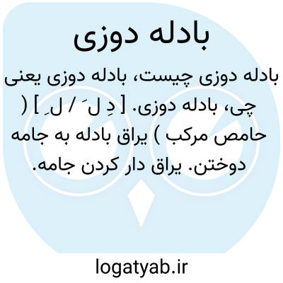 لغت نامه دهخدا بادله دوزی. [ دِ ل َ / ل ِ ] ( حامص مرکب ) یراق بادله به جامه دوختن. یراق دار کردن جامه.