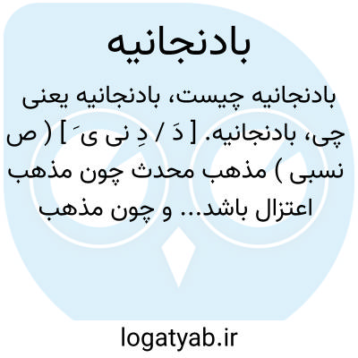 بادنجانیه. [ دَ / دِ نی ی َ ] ( ص نسبی ) مذهب محدث چون مذهب اعتزال باشد... و چون مذهب بادنجانیه که واضعش بادنجان فروش است. ( کتاب النقض ص 17 ).