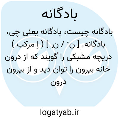بادگانه. [ ن َ / ن ِ ] ( اِ مرکب ) دریچه مشبکی را گویند که از درون خانه بیرون را توان دید و از بیرون درون را نتوان دید. ( برهان ). دریچه ای باشد مشبک و آنرا پالکانه نیز خوانند. ( جهانگیری ). دریچه مشبکی که از درون خانه بیرون را توان دید و از بیرون درون را نتوان دید و چنین درها در بنادر فارس خاصه بوشهر که بگرمی هوا معروف است بسیاراند که از بیرون درون را نبینند ولی باد آید و خانه را خنک کند و آن درها مانع باد نباشند و آن در راکرکری گویند. ( آنندراج ) ( انجمن آرا ). پنجره. رجوع به شعوری ج 1 ورق 190 و ناظم الاطباء شود: