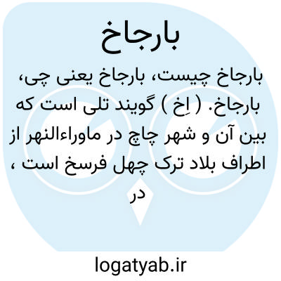 بارجاخ. ( اِخ ) گویند تلی است که بین آن و شهر چاچ در ماوراءالنهر از اطراف بلاد ترک چهل فرسخ است، در پیرامون آن هزار چشمه آب است که از مشرق بسوی مغرب جاری میشوند و موسوم است برکوب آب یعنی آب مغلوب و در آن دراج صید میشود. ( معجم البلدان ) ( مراصد الاطلاع ).