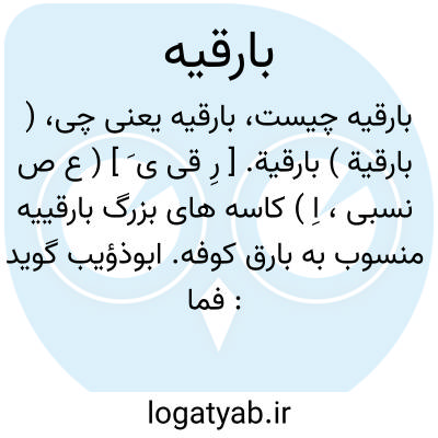 ( بارقیة ) بارقیة. [ رِ قی ی َ ] ( ع ص نسبی، اِ ) کاسه های بزرگ بارقییه منسوب به بارق کوفه. ابوذؤیب گوید:
