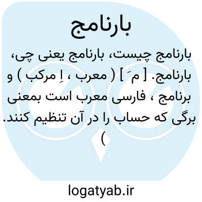 بارنامج. [ م َ ] ( معرب، اِ مرکب ) و برنامج، فارسی معرب است بمعنی برگی که حساب را در آن تنظیم کنند. ( اقرب الموارد ) ( المنجد ). و رجوع به برنامج و بارنامه و دزی ج 1 ص 48 شود. مأخوذ از بارنامه فارسی، کتاب حساب و دفتر. ( ناظم الاطباء ). || نسخه ای که محدث در آن نامهای روات و اسانید کتب خویش را می نویسد. ( اقرب الموارد ) ( المنجد ). || فهرست مکاتب و مانند آن. ( المنجد ).