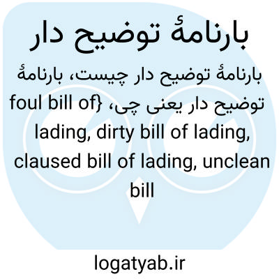 {foul bill of lading, dirty bill of lading, claused bill of lading, unclean bill of lading, dirty bill} [حمل ونقل دریایی] بارنامه ای که در آن توضیحاتی دربارۀ عیوب کالا یا بسته بندی آن درج شده است