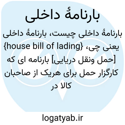 {house bill of lading} [حمل ونقل دریایی] بارنامه ای که کارگزار حمل برای هریک از صاحبان کالا در یک بار گروهی صادر می کند