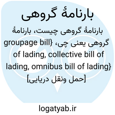 {groupage bill of lading, collective bill of lading, omnibus bill of lading} [حمل ونقل دریایی] بارنامۀ مشترک برای چند بار مختلف که شرکت حمل کننده یکجا برای کارگزار صادر می کند
