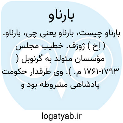 بارناو. ( اِخ ) ژوزف. خطیب مجلس مؤسسان متولد به گرنوبل ( 1761-1793 م. ). وی طرفدار حکومت پادشاهی مشروطه بود و سرانجام سرش را برداشتند.