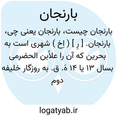 بارنجان. [ رِ ] ( اِخ ) شهری است به بحرین که آن را علأبن الحضرمی بسال 13 یا 14 هَ. ق. به روزگار خلیفه دوم عمربن خطاب بگشود. ( از معجم البلدان ). و رجوع به قاموس الاعلام ترکی ج 2 و مراصدالاطلاع شود.