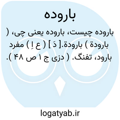 ( بارودة ) بارودة.[ دَ ] ( ع اِ ) مفرد بارود، تفنگ. ( دزی ج 1 ص 48 ).