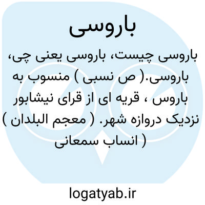 باروسی.( ص نسبی ) منسوب به باروس، قریه ای از قرای نیشابور نزدیک دروازه شهر. ( معجم البلدان ) ( انساب سمعانی ). باروسی.( اِخ ) ابوالحسن سلم بن الحسن الباروسی. ابوعبدالرحمن سلمی در تاریخ صوفیه از او نام برده است و گوید وی از قدماء صوفیه نیشابور و مستجاب الدعوه و استاد حمدون قصاب بود. ( معجم البلدان: باروس ) ( انساب سمعانی ).