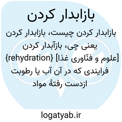 {rehydration} [علوم و فنّاوری غذا] فرایندی که در آن آب یا رطوبت ازدست رفتۀ مواد غذایی خشکشده بازگردانده می شود