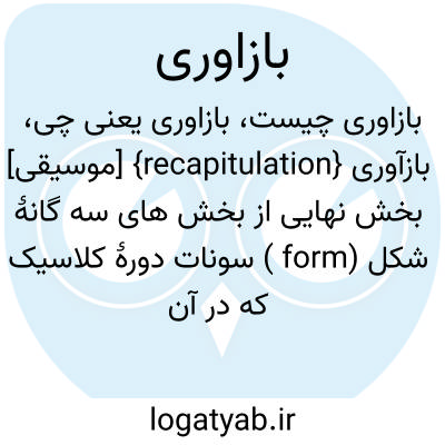 {recapitulation} [موسیقی] بخش نهایی از بخش های سه گانۀ شکل (form ) سونات دورۀ کلاسیک که در آن موادِ بخش گشایش، همگی در مایۀ اصلی دوباره اجرا می شوند
