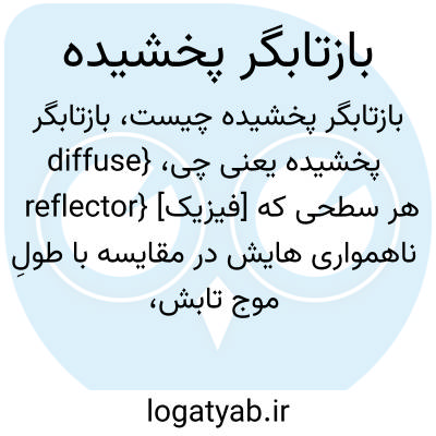 {diffuse reflector} [فیزیک] هر سطحی که ناهمواری هایش در مقایسه با طولِ موج تابش، فرودی باشد و درنتیجه پرتوهای بازتابیده از آن در جهت های مختلف پراکنده شود