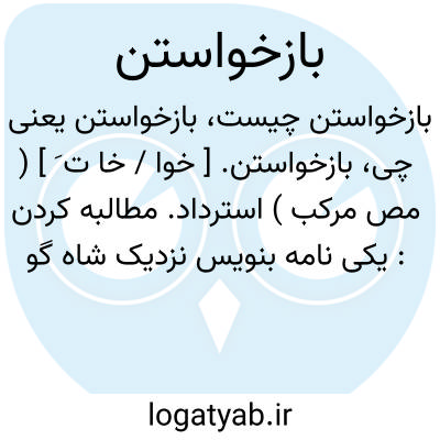|| فراخواندن: و پیروز وزیری خادم که ازاین راز آگاه بود ایشان را بازخواست و بدان سردابه رفتند. ( تاریخ بیهقی چ ادیب ص 128 ). || دیگر بار پرسیدن. ازنو سؤال کردن. توضیح خواستن: فضل املاء همی کرد و سخن نرم همی گفت، یکی سخن بگفت. دبیر نشنیدآن سخن. از وی بازخواست تا داند که چه نویسد؟ دیگربار گفت دبیر هم نشنید آن سخن، دیگر بازخواست. ( تاریخ بیهقی ).