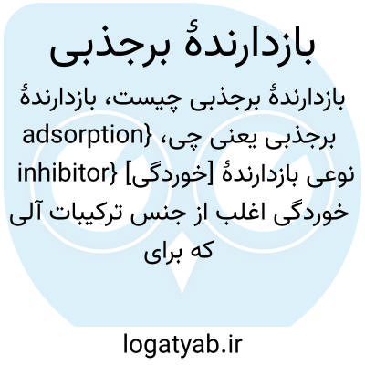 {adsorption inhibitor} [خوردگی] نوعی بازدارندۀ خوردگی اغلب از جنس ترکیبات آلی که برای متوقف کردن واکنش های انحلال و کاهش، جذب سطح فلز می شود متـ. بازدارندۀ جذب سطحی