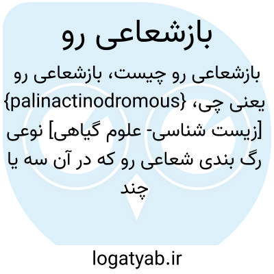 {palinactinodromous} [زیست شناسی- علوم گیاهی] نوعی رگ بندی شعاعی رو که در آن سه یا چند رگبرگ اولین از یک نقطه منشعب می شوند و بعد از رسیدن به نقطه ای مشترک مجدداً تقسیم می شوند