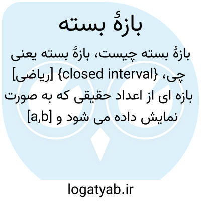 {closed interval} [ریاضی] بازه ای از اعداد حقیقی که به صورت [a,b] نمایش داده می شود و متشکل از تمام اعدادی است که از a ناکمتر و از b نابیشتر هستند