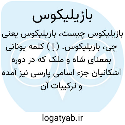 لغت نامه دهخدا بازیلیکوس. ( اِ ) کلمه یونانی بمعنای شاه و ملک که در دوره اشکانیان جزء اسامی پارسی نیز آمده و ترکیبات آن مورد استعمال قرار گرفته است.