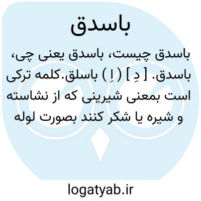 باسدق. [ دِ ] ( اِ ) باسلق.کلمه ترکی است بمعنی شیرینی که از نشاسته و شیره یا شکر کنند بصورت لوله ای و در میان آن مغز گردکان نهند و بر ریسمانی کشند. ( یادداشت مؤلف ). فراته. مُلَبَّن. فلاتج. ( یادداشت مؤلف ). و رجوع به باسلق شود.