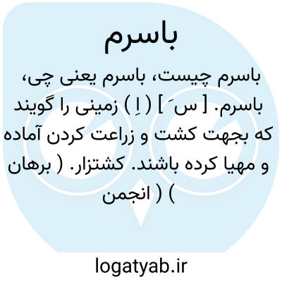 باسرم. [ س َ ] ( اِ ) زمینی را گویند که بجهت کشت و زراعت کردن آماده و مهیا کرده باشند. کشتزار. ( برهان ) ( انجمن آرای ناصری ) ( فرهنگ جهانگیری ) ( هفت قلزم ) ( آنندراج ) ( ناظم الاطباء ). زمینی است که برای زراعت حاضر کنند. ( فرهنگ شعوری ). باسره وباسرم، زمین شیار کرده که مهیای زراعت باشد. ( رشیدی ). و رجوع به باسره شود.