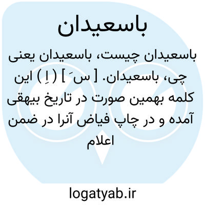 باسعیدان. [ س َ ] ( اِ ) این کلمه بهمین صورت در تاریخ بیهقی آمده و در چاپ فیاض آنرا در ضمن اعلام اماکن و قبایل آورده اند و در ص 283 در حاشیه مینویسند: کذا در همه نسخه ها، و اگر صحیح باشد شاید اصطلاح بوده برای غازیان ( مطوعه ): و مردم ماوراء النهرنیز آمدن گرفتند و باسعیدان نیز جمع شوند وغزوی نیکو برود برایشان امسال. ( تاریخ بیهقی چ ادیب ص 284 ).