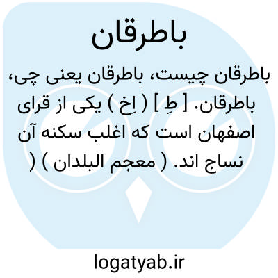 باطرقان. [ طِ ] ( اِخ ) یکی از قرای اصفهان است که اغلب سکنه آن نساج اند. ( معجم البلدان ) ( مرآت البلدان ج 1 ص 160 ). دهی است به اصفهان. ( منتهی الارب ). از قراء اصفهان. ( مراصدالاطلاع ): دیوانه ای بود از دیه باطرقان بغایت خوش سخن. ( ترجمه محاسن اصفهان ص 112 ).