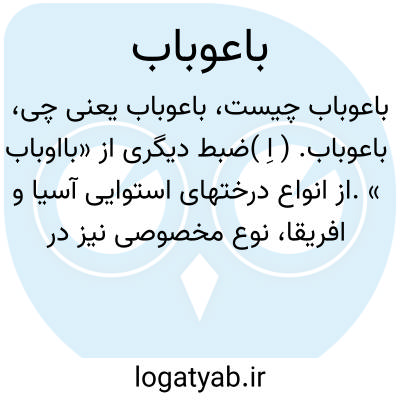 باعوباب. ( اِ )ضبط دیگری از «بااوباب ».از انواع درختهای استوایی آسیا و افریقا، نوع مخصوصی نیز در استرالیا و ماداگاسکار دارد. ارتفاع این درخت با همه تنومندی، از 9 یا 10 گز تجاوز نکند ولی گاهی اوقات اطراف تنه آن به 23 گز رسد. کلمه بااوباب معنی «هزار ساله درخت » میدهد، رجوع به بااوباب و همچنین لغات تاریخیه و جغرافیه ترکی ج 1 ص 33 شود.