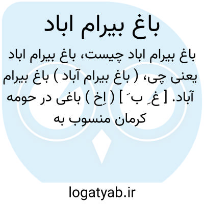 ( باغ بیرام آباد ) باغ بیرام آباد. [ غ ِ ب َ ] ( اِخ ) باغی در حومه کرمان منسوب به گنجعلی خان حاکم صفوی کرمان. این باغ اکنون از موقوفات گنجعلی خان است. در افواه هست که شاه عباس در سفر کرمان به این باغ هم رفته است. رجوع به حاشیه تاریخ کرمان، چ باستانی پاریزی ص 280 شود.