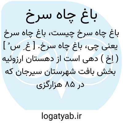 باغ چاه سرخ. [ غ ِ س ُ ] ( اِخ ) دهی است از دهستان ارزوئیه بخش بافت شهرستان سیرجان که در 85 هزارگزی جنوب بافت بر سر راه مالرو خبر به ده سرد واقع است و 12 تن سکنه دارد. ( از فرهنگ جغرافیایی ایران ج 8 ).