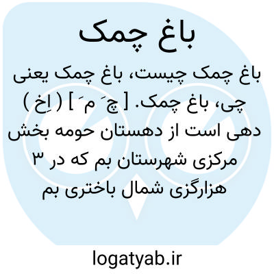 باغ چمک. [ چ َ م َ ] ( اِخ ) دهی است از دهستان حومه بخش مرکزی شهرستان بم که در 3 هزارگزی شمال باختری بم و 2 هزارگزی شمال شوسه بم به کرمان در جلگه واقع است. ناحیه ای است گرمسیر دارای 341 تن سکنه. آب آن از قنات و چشمه تأمین میشود. محصول عمده آن غلات و خرما و انار و شغل مردمش زراعت و راه آن فرعی است. ( از فرهنگ جغرافیایی ایران ج 8 ).