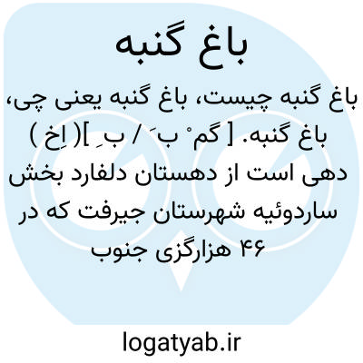 باغ گنبه. [ گم ْ ب َ / ب ِ ]( اِخ ) دهی است از دهستان دلفارد بخش ساردوئیه شهرستان جیرفت که در 46 هزارگزی جنوب خاوری ساردوئیه و 5 هزارگزی خاور راه مالرو جیرفت به ساردوئیه واقع است و 5 تن سکنه دارد. ( از فرهنگ جغرافیایی ایران ج 8 ).