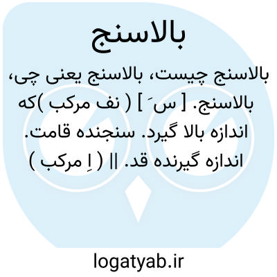بالاسنج. [ س َ ] ( نف مرکب )که اندازه بالا گیرد. سنجنده قامت. اندازه گیرنده قد. || ( اِ مرکب ) قدسنج. قامت سنج. آلت و وسیله ای که بدان اندازه قامت اشخاص را به دست آرند و معمولاً عبارت است از عمودی مدرج بدرجاتی که میزان ارتفاع را نشان میدهد و برپایه ای مسطح نهاده شده و آن کس را که خواهند ارتفاع قامتش را اندازه گیرند بر آن سطح قرار دهند و تخته ای را که بر میله عمود نصب و متحرک است تا به انتهای میله بالا برند و پس از قرار گرفتن شخص مورد آزمایش فرود آرند بدان حد که درست بر فرق سر او مماس شود و درجه محاذی آن ارتفاع قامت وی را بنماید. رجوع به روان شناسی پرورشی دکتر سیاسی فصل اندازه گیری قد شود.