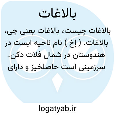 بالاغات. ( اِخ ) نام ناحیه ایست در هندوستان در شمال فلات دکن. سرزمینی است حاصلخیز و دارای جنگلهای پهناور و معادن الماس و مس. پس از انقراض سلاطین تیموری هند، این ناحیه توسط حیدرشاه تصرف شد و سپس به نظام حیدرآباد رسید و اکنون جزء حکومت مدرس اداره میشود. رجوع به قاموس الاعلام ترکی شود.