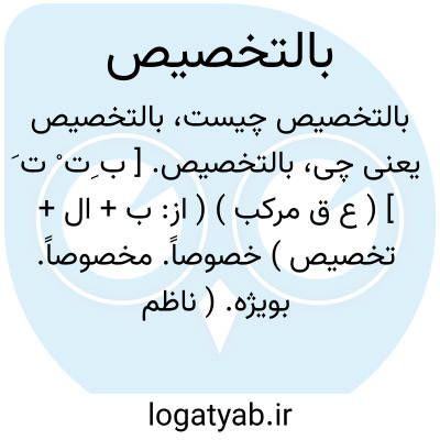 بالتخصیص. [ ب ِت ْ ت َ ] ( ع ق مرکب ) ( از: ب + ال + تخصیص ) خصوصاً. مخصوصاً. بویژه. ( ناظم الاطباء ). اختصاصاً. و رجوع به تخصیص شود.
