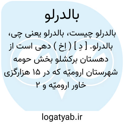 بالدرلو. [ دِ ] ( اِخ ) دهی است از دهستان برکشلو بخش حومه شهرستان ارومیّه که در 15 هزارگزی خاور ارومیّه و 2 هزارو پانصدگزی جنوب شوسه گلمانخانه به ارومیّه در جلگه واقع است. ناحیه ایست دارای آب و هوای معتدل و401 تن سکنه، آب آنجا از شهرچای تأمین میشود و محصول عمده آن غلات و توتون و انگور و چغندر و حبوبات وشغل مردمش زراعت و صنایع دستی آنان جوراب بافی است وراهش مالرو است. ( از فرهنگ جغرافیایی ایران ج 4 ).