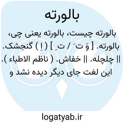 بالورته. [ وَ ت َ / ت ِ ] ( اِ ) گنجشک. || چلچله. || خفاش. ( ناظم الاطباء ). این لغت جای دیگر دیده نشد و محتمل است تصحیف بالوایه باشد.